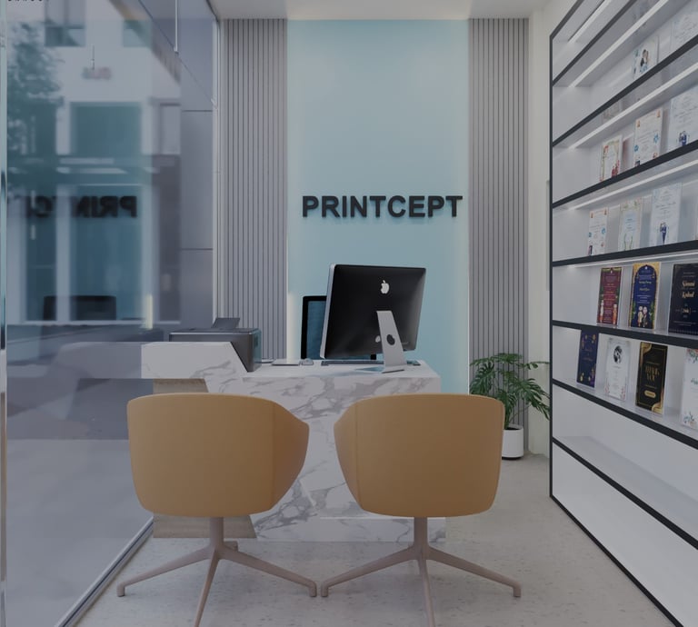 Printcept India is an innovative printing and graphic design house where creativity flourishes. We create custom flyers, brochures, posters, and banners that make your brand shine. Our business stationery range enhances your corporate image through letterheads, envelopes, and ID cards. We offer unique promotional products like t-shirts, pens, and calendars, perfect for connecting with your audience. For impactful presentations, choose from roll-up standees, backdrops, and acrylic boards. Need business cards? We've got you covered with gloss laminated, embossed, spot UV, and metallic finishes. Our high-quality stickers, certificates, and custom printing options cater to diverse needs